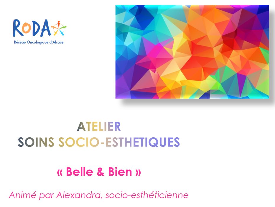 Comme chaque mois, vous pourrez retrouver l'atelier de socio esthétique proposé par RODA en allant sur l'onglet actualités de votre site www.aidecancer68.fr
