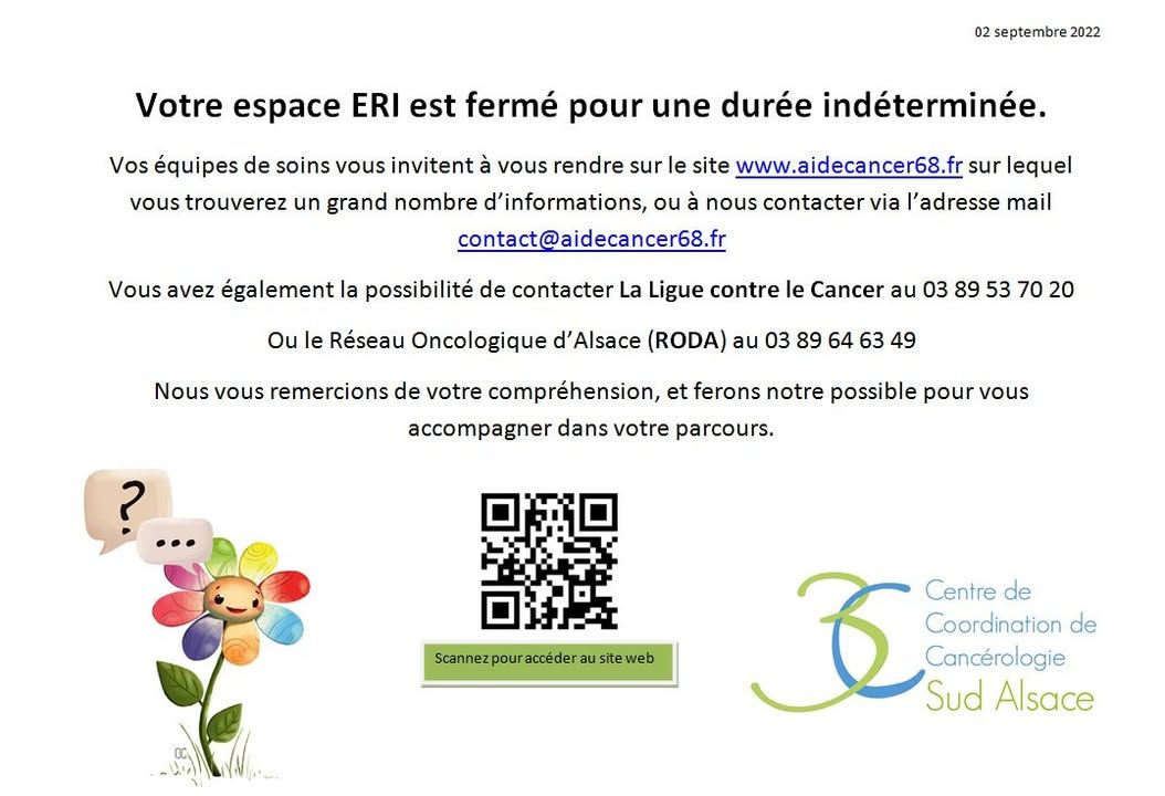 L'espace Rencontre et Informations, que vous connaissez sous le nom d'ERI, a fermé ses portes pour une durée indéterminée.