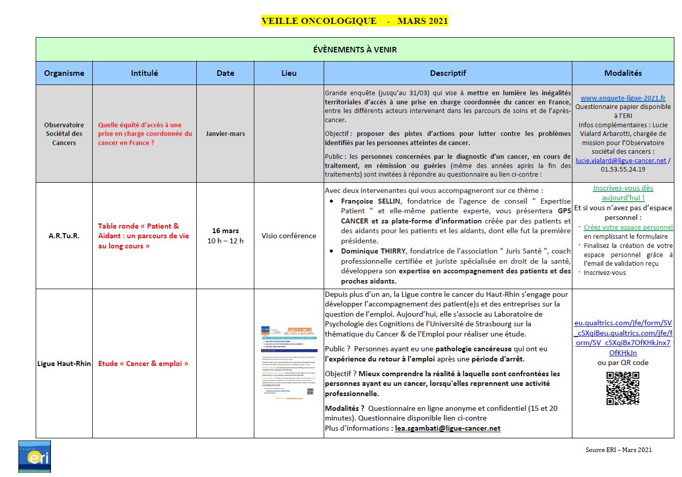 Veille oncologique mars 2021