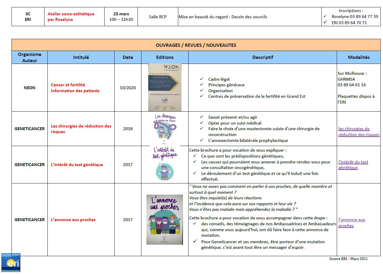 Comme chaque mois, vous pourrez retrouver ici l'acualité proposée sélectionnée par Nicole Belhadj, accompagnatrice en santé de l'ERI Mulhouse