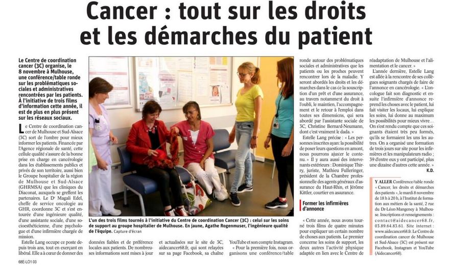 Une fois n'est pas coutume, la commission des soins de support qui réunit les professionnels du territoire de santé Mulhouse et Sud Alsace une fois par mois, partage avec vous le contenu de la rencontre du mois de juin.
